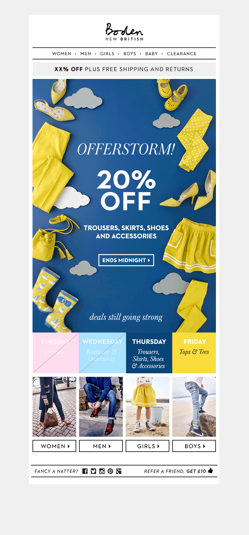 The second creative launched in January and was for a childrenswear focussed sale with a different discount offered each day. The idea was based on using the weather to predict your ‘fashion forecast’ for the week.